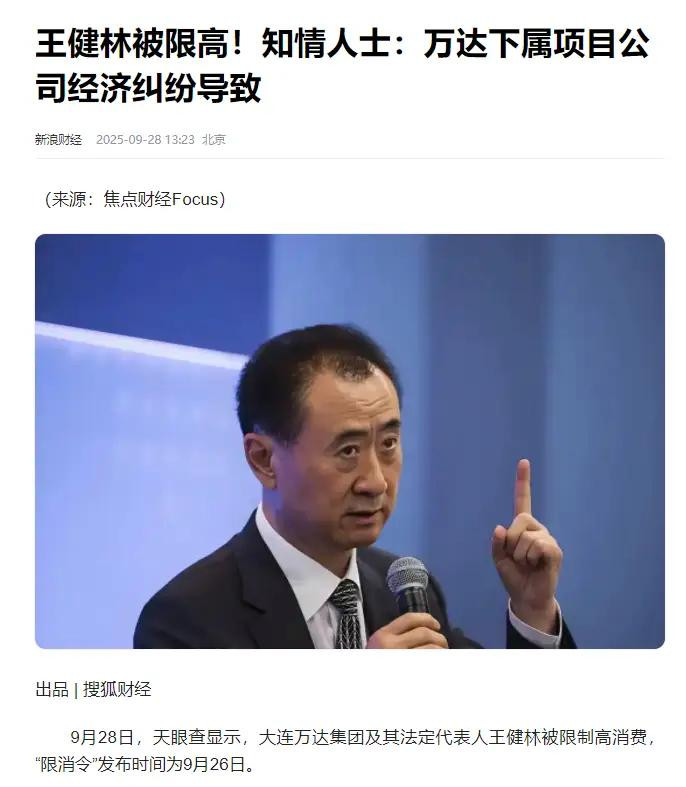 就在王思聪公司被执行的同时,他的父亲王健林也遭遇了“限高”风波。